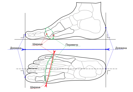 Взуття повинне бути таким, щоб його основні розміри й внутрішня форма відповідали розмірам і особливостям стопи.[2]
