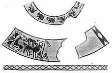 Форма, забарвлення і розташування малюнка посудини точно повторює посудини, знайдені в похованнях Кизил-Ванка. Її ж розміри і малюнком відрізняються від кизил-ванкських. Алекперов вважав, що малюнки на глечику зображували місцеву фауну[5].
