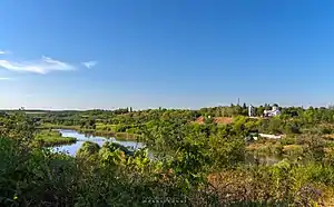 ![]() Панорама села Розумівка із Хрестовоздвиженською церквою, усипальницею Раєвських | |||||