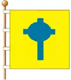 Жовте квадратне полотнище з синім Розумівським хрестом в центрі.