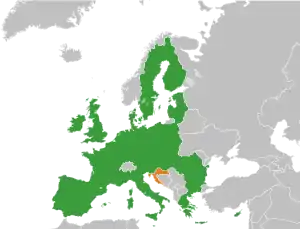 Договір про вступ Хорватії, а також деякі редагування в Договорі ЄС були підписані в 2012 році. Процес ратифікації парламентами усіх 27 держав-членів ЄС договору був завершений приєднанням Хорватії до ЄС 1 липня 2013 року[3].