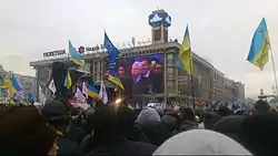 Після місяців вуличних акцій протесту на Євромайдані, які розпочались через його відмову підписати Угоду про асоціацію з Європейським Союзом на користь угод з Росією, президент Янукович втік з Києва в лютому 2014 року, зрештою, до Росії, і парламент проголосував за його усунення з посади. Це призвело до чергових змін в напрямку асоціації України з Європою та, по суті, з НАТО. У 2014 році на сході України сталися проросійські заворушення, а Крим був анексований Російською Федерацією в березні. В рамках зусиль для заспокоєння зацікавлених груп новостворений прем'єр-міністр Арсеній Яценюк звернувся до цієї теми у своїй промові 18 березня 2014 року, наголосивши, що Україна не прагне вступу до НАТО.[88] Президент США Барак Обама повторив цю позицію наступного тижня, закликаючи до більшої присутності НАТО у Східній Європі.[89]