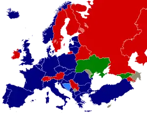 Країни Центральної та Східної Європи наполягали на розширенні НАТО, зумовлене головним чином діями Росії на внутрішньому рівні (Перша чеченська війна) та на міжнародному рівні (Придністровська війна, Війна в Абхазії), а також закликами до відновлення СРСР,[11] які всі сприймалися як неоімперіалістичні серйозне занепокоєння щодо країн, які пам'ятали про подібні радянські наступи. Політичні партії, які не бажають переходити до членства в НАТО, такі як Болгарська соціалістична партія та словацька HZDS, були позбавлені повноважень.[12] Зацікавленість Угорщини приєднатися підтвердив референдум у листопаді 1997 р., який повернув 85,3 відсотка на користь членства,[13] аналогічно Польщі з підтримкою понад 80%.[14]
