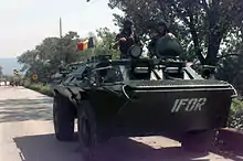 - Бомбардування НАТО в Боснії та Герцеговині в 1995 р. було спрямоване на армію боснійських сербів і разом з міжнародним тиском призвело до розв'язання Боснійської війни та підписання Дейтонської угоди в 1995 р. З тих пір НАТО очолювала Сили реалізації та Стабілізаційні сили, і інші миротворчі зусилля в країні. Боснія і Герцеговина приєдналася до програми "Партнерство заради миру" у 2006 році та підписали угоду про співпрацю у галузі безпеки в березні 2007 року.[67]