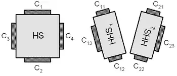 HHS1, HHS2 з контактами C11, С12, C13 та C21, С22, C23, відповідно (справа) |