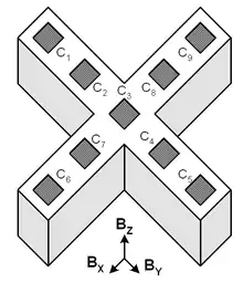 ![]() Активна частина тонкоплівкової РХС 3D зонда магнітного поля |