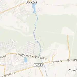 Знаходиться на лівому березі річки Вожойка, обабіч автошляху Іжевськ — Воткінськ.