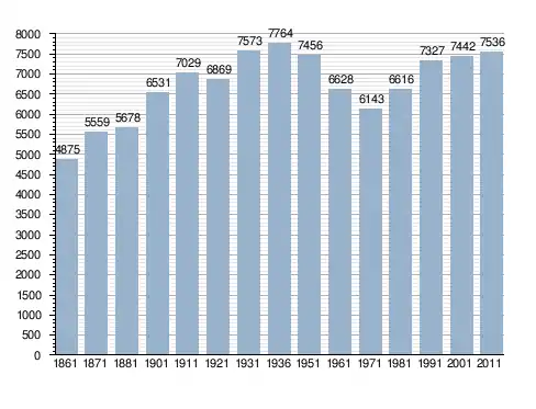 Станом на 31 грудня 2014 року в муніципалітеті офіційно проживали 244 іноземці з 38 країн, серед них 111 громадян країн Євросоюзу та 19 громадян України.[4]