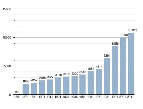 Станом на 31 грудня 2014 року в муніципалітеті офіційно проживало 1005 іноземців з 56 країн, серед них 620 громадян країн Євросоюзу та 40 громадян України.[4]