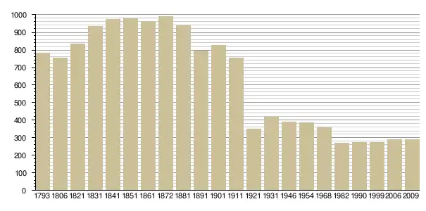 Динаміка населення (base Cassini de l'EHESS pour les nombres retenus jusque 1962[3], base Insee à partir de 1968 (population sans doubles comptes puis population municipale à partir de 2006)[4] · [5] ):