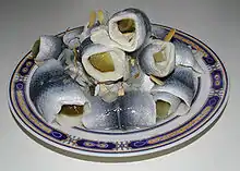 Рольмопс, роль-мопс — маринований оселедець, скручений в рулетики. Рулони скріплюються дерев'яними паличками. Всередину додають корнішон або цибулю. Назву цієї страви було придумано у XIX столітті, завдяки моді на мопсів. Мабуть, згорнутий у рулетик оселедець з огірками віддалено нагадував собачу мордочку.