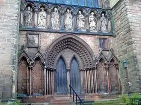 Середньовічний Лічфілдський собор, м. Лічфілд, Стаффордшир, Англія. Сім фігур собору вирізано в римському цементі.