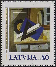 Найбільш відомі живописні роботи: «Церква» (1917), «Дві фігури» (1919), «Автопортрет з трубкою» (1919), «Окопники» (1920), «Натюрморт з пилкою» (початок 20-х років), «Арлекін з гітарою» (1923), «Яніс Пласа з подругою» (1927), «Іподром» (1933).
