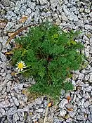 Одно- чи дворічна трав'яниста рослина, висотою 10–50 сантиметрів, зі стрижневим коренем. Має розгалужені голі стебла, червонуваті біля основи, далі зеленуваті. Листя перисте. Кошикової форми суцвіття має діаметр від 2 до 4 см. Зовнішні квіти білі, внутрішні — трубчасті, жовті. Зовнішні квіти відкриваються раніше. Плоди — гладка сім'янка.