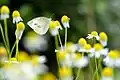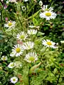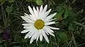 Крайові квітки кошиків язичкові, білі, серединні — трубчасті, жовті, містяться на довгому, конічному, всередині порожнистому квітколожі. Цвіте в червні — серпні.