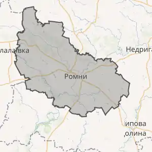 У складі громади 1 місто (Ромни) і 74 села[2]: