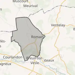 - Розташування муніципалітету Ромен на мапі Франції та сусідні муніципалітети