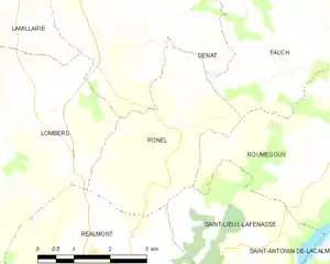 - Розташування муніципалітету Ронель на мапі Франції та сусідні муніципалітети