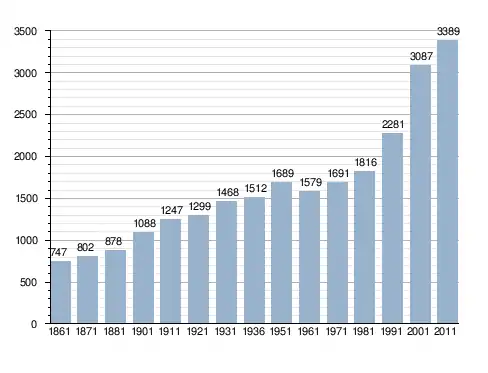 Станом на 31 грудня 2014 року в муніципалітеті офіційно проживало 225 іноземців з 34 країн, серед них 77 громадян країн Євросоюзу та 5 громадян України.[4]