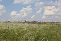 Домішками до панівних видів у степах виступають представники різнотрав'я: валер'яна бульбиста, деревій звичайний, залізняк бульбистий, морква дика, миколайчики сині, чебрець широколистий, а також усілякі бобові трави, серед яких найбільш чисельні астрагали (Astragalus calycinus, міхурчастий, яйцеплодий тощо), вики (Vicia olbiensis, волохата, чотиринасінна, шорстка) і верблюжа колючка звичайна. Характерною особливістю місцевого степу є присутність у ньому різноманітних видів лободи (14 видів), вихідців з напівпустель ферул, а також рослин штибу перекотиполе, зокрема, кермеків Маєра, сарептського, стокротколистого (прикаспійського підвиду), широколистого і кермечника татарського[4].