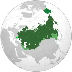 На початку XX ст. Російська імперія була другою за величиною країною світу, поступаючись Британській імперії[3], займаючи 1/6 частину суходолу або 21,8 млн км² (без Аляски площею 1 717 854 км²). До неї входила вся територія колишнього СРСР (крім Калінінградської області, Галичини, Буковини та Закарпаття і Південного Сахаліну, який був в імперії до 1905 року, Курильські острови в різний час цілі, або північчю теж були в імперії), а також велика частина Польщі, Фінляндія та Аляска, яка входила до неї в 1744—1867 роках.