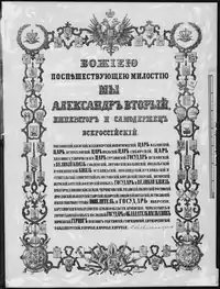 Поразка імперіалізму у Кримській війні змусила самодержавство шукати нових шляхів подолання економічної та соціальної кризи. Реформи, які дозволили б модернізувати найвідсталіші ділянки суспільного життя, розпочав здійснювати новий російський імператор Олександр II. Реформи Олександра II, які через прагнення імперіалізму зберегти головні важелі самодержавного управління і соціальну опору режиму (дворянство), хоча і мали обмежений характер, все ж відкрили певний простір для розвитку капіталістичних відносин в економіці і сприяли поліпшенню державного керівництва. Найважливішою з реформ було скасування кріпосницького права («Маніфест» і «Положення 19.2. 1861»), яке здійснювалось поступово, протягом кількох років шляхом переводу поміщицьких селян спочатку на становище «тимчасовозобов'язаних» (див. Тимчасовозобов'язані селяни), а потім «викупних». Селяни отримували особисту свободу та громадянські права. Земельний наділ, яким вони користувались, ставав їхньою власністю лише після завершення викупної операції, що проводилась в інтересах поміщиків. Порядок здійснення викупної операції, збереження численних переваг за поміщиками (відрізки, відробки) розтягнули процес скасування кріпацтва на десятиліття (стягнення викупних платежів припинено у 1907), зумовили зубожіння основної маси селянського населення і спричинили численні селянські виступи і заворушення. У національних окраїнах імперії селянська реформа була проведена у 1864-71 при збереженні ще більших привілеїв для великих землевласників.