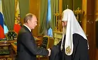 Російська православна церква ще з часів Петра I існує як державна структура в ролі надійної опори імперії.[11] Першим і головним обов'язком церкви у її відношенні до держави було насадження „вірнопідданих“ почуттів.[11][13] Цього намагалися досягнути введенням свого роду культу імператорської влади.[94] Російська православна церква є своєрідною м'якою силою для поширення і легітимізації російського релігійного, культурного, політичного та ідеологічного впливу, зокрема експансії на пострадянському просторі.[40] „Православ'я, самодержавство, народність“ — триєдина формула державної ідеології.[95] Православ'я поставлене на службу самодержавству.