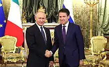 22 березня 2020 року, після телефонного дзвінка з прем'єр-міністром Італії Джузеппе Конте, президент Росії Володимир Путін домовився про відправлення російською армією військових медиків, спеціальних засобів для дезінфекції та іншого медичного обладнання до Італії, яка найбільше постраждала в Європі від 2019 року –20 пандемія коронавірусу.[81] Президент Ломбардії Аттіліо Фонтана та міністр закордонних справ Італії Луїджі Ді Майо висловили вдячність Росії.[82] На думку деяких аналітиків, медична допомога Росії була спробою сформувати позитивне сприйняття країни в умовах глобальної невизначености.[83]