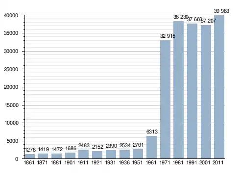 Станом на 31 грудня 2014 року в муніципалітеті офіційно проживало 4515 іноземців з 99 країн, серед них 822 громадяни країн Євросоюзу та 136 громадян України.[4]