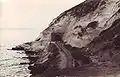 - Середній шар м'якої крейди утворює гострі скелі, висота яких сягає 70 метрів, які переплітаються з крем'яними смужками. У цьому шарі морськими хвилями були викопані печери.