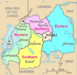 | 5 | Провінція Кігалі (Umujyi wa Kigali) | Кігалі (Kigali) | 738 | 965 398 | 1308,13 | 1 132 686 |