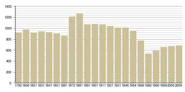 Динаміка населення (INSEE [3] і Ldh/EHESS/Cassini [4]. ):