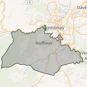 - Розташування муніципалітету Руаф'є на мапі Франції та сусідні муніципалітети
