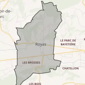 - Розташування муніципалітету Руая на мапі Франції та сусідні муніципалітети