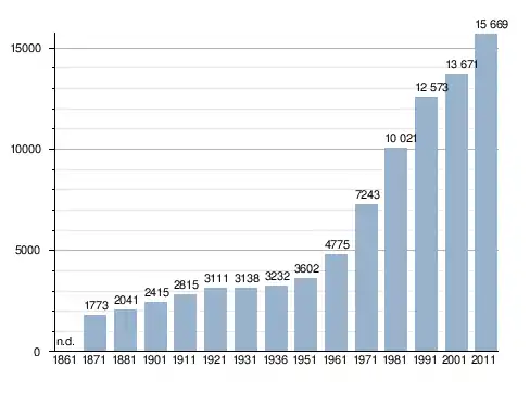 Станом на 31 грудня 2014 року в муніципалітеті офіційно проживав 1561 іноземець з 61 країни, серед них 641 громадянин країн Євросоюзу та 47 громадян України.[4]