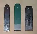 | A — робоча щілина (льоток), B — ніж (залізко), C — клин, |