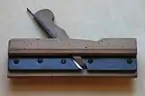 - Універсальний фальцгобель дає змогу вибирати фальці різних розмірів за рахунок пересування металевих кутників на підошві, які регулюють гвинтами.