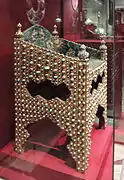 Трон шаха Аббаса I — подарунок царю Борису Годунову, до 1604 року, 552 рубіна, 825 каменів бірюзи, 177 перлин і 700 половинок перлин, Кремль