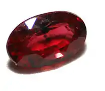 Рубі́н (лат. rubens, rubinus — червоний) — різновид мінералу корунду. Червоне забарвлення зумовлене домішками хрому; колір може варіюватися від блідо-червоного до темно-червоного.
