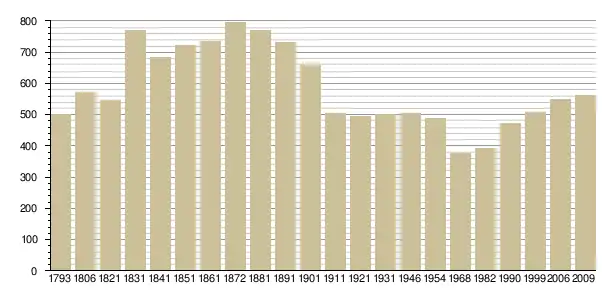 Динаміка населення (base Cassini de l'EHESS pour les nombres retenus jusqu'en 1962[4], base Insee à partir de 1968 (population sans doubles comptes puis population municipale à partir de 2006)[5] · [6] ):