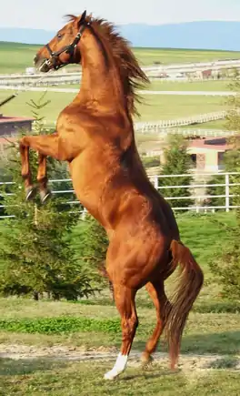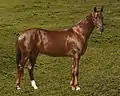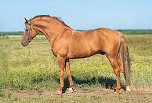 Кінь теплокровної групи порід бурого відтінку рудої масті.
