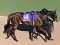 Кінь теплокровної групи порід темно-вугільно-рудої масті.