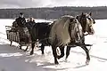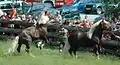 Коні шварцвальдської породи темно-ігреневого та бурого відтінків рудої масті.