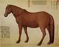 Кінь торійської породи темно-рудої масті.