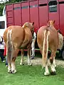 Коні суффолькської породи рудої масті з освітленим захисним волоссям.