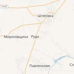 Село Руда знаходиться на відстані 1,5 км від села Штепівка і за 1 км від села Миронівщина. По селу протікає пересихаючий струмок з загатою. Через село проходить автомобільна дорога Т 1906.