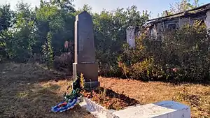 ![]() Пам'ятний знак полеглим землякам та руїни земської школи | |