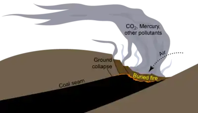 - ендогенні, що виникають від самозаймання корисної копалини (лігнітів, бурого та кам’яного вугілля, торфу, вуглистих сланців, сірчаних та сірчистих руд);