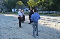 Голова Рудницької сільської ради Ткачук Володимир Микитович та секретар Гичка Галина Олександрівна спілкуються з учасниками Вікіекспедиції