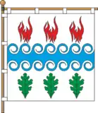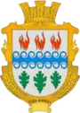 Синя хвиляста балка – річка Цвітоха; три вогні над трьома листками – випалювання руди за допомогою деревини.